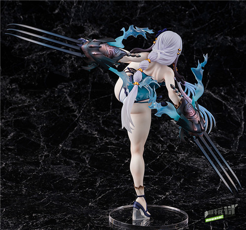 莉拉1/7手辦全高約為24厘米。手辦參用了游戲中流浪莉拉穿著翠綠色連衣裙泳裝使出踢擊的造型。作為以肉感為標志的《萊莎的煉金工房》中的角色,莉拉手辦也有著肉感十足的大腿以及充滿肌肉力量的刻畫。緊貼腹部的泳裝展現著可愛的肚臍,同時豐滿胸部也呼之欲出。從用半透明材質的頭發展現著發絲通透的質感。招牌武器“幽藍爪”也通過金屬色體現其作為武器的質量。